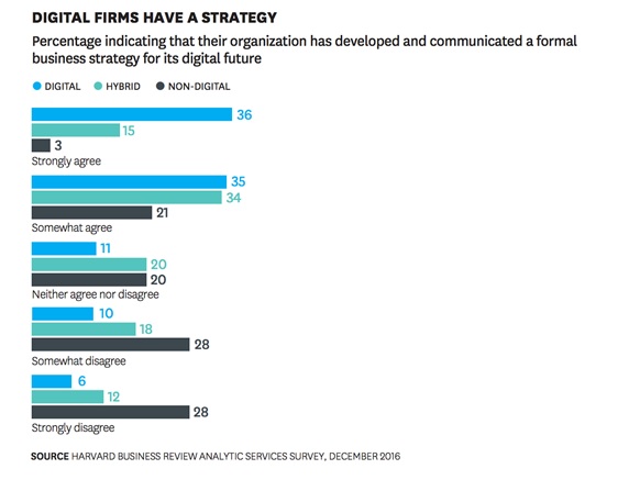 Once this is achieved, non-digital organizations and hybrids can learn from digital leaders about the benefits of having a formal digital strategy and how this can be implemented in their business.