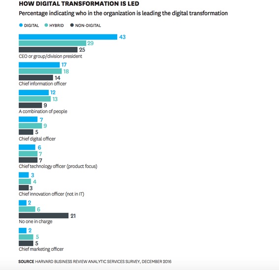 When it comes to the person who leads digital transformation in an organization, CEOs seem to be the first ones to embrace the change.