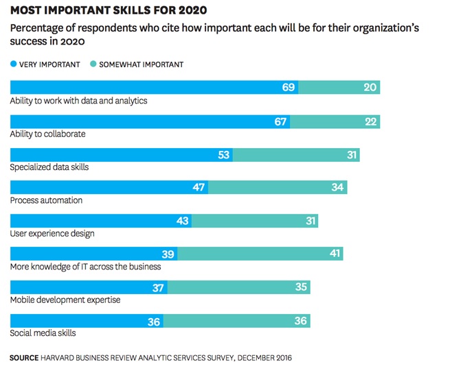 According to respondents, the most important skill that digital leaders need to have for 2020 is the ability to work with data and analytics, with focusing on specialized data skills ranked third in the list.