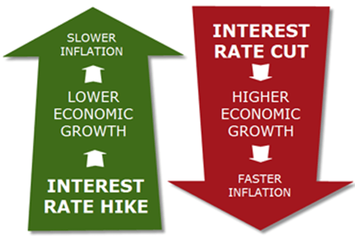 Why is this the case? Well, this is because as interest rates are reduced, consumers tend to borrow more money because with lower interest rates it is cheaper for them to do so. As more money is lent out, the money supply increases and typically expands the economy, due to all that money being spent, however, the increase in the money supply also causes inflation.