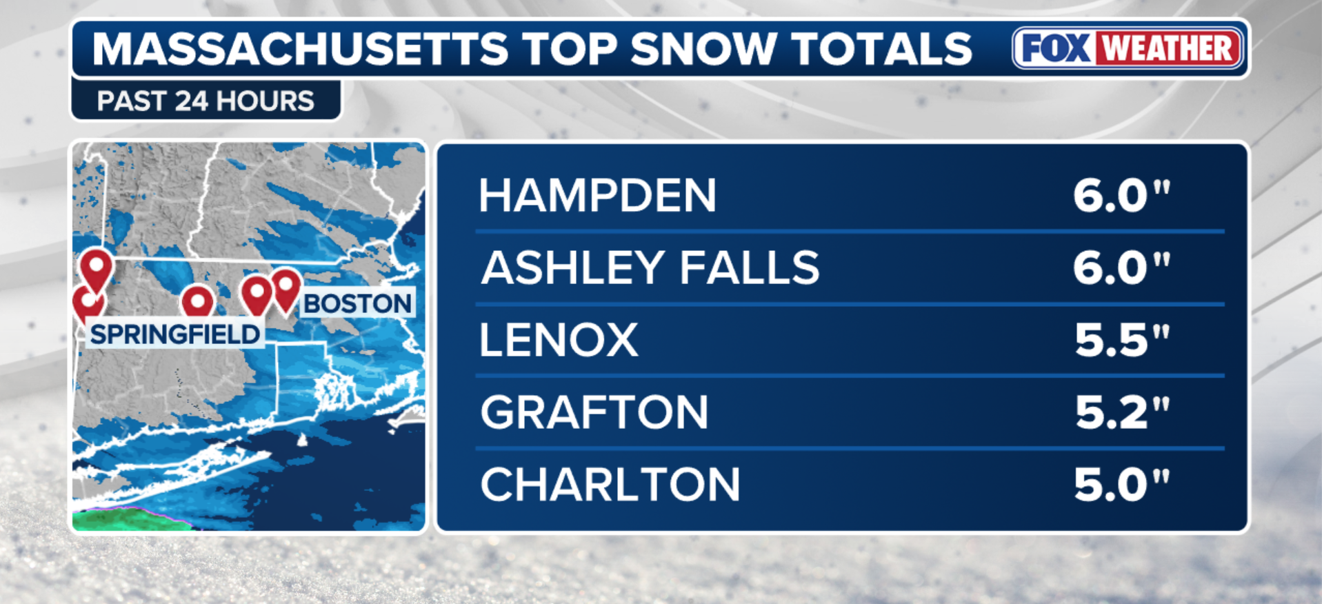Snowfall stretching from Massachusetts through Philadelphia